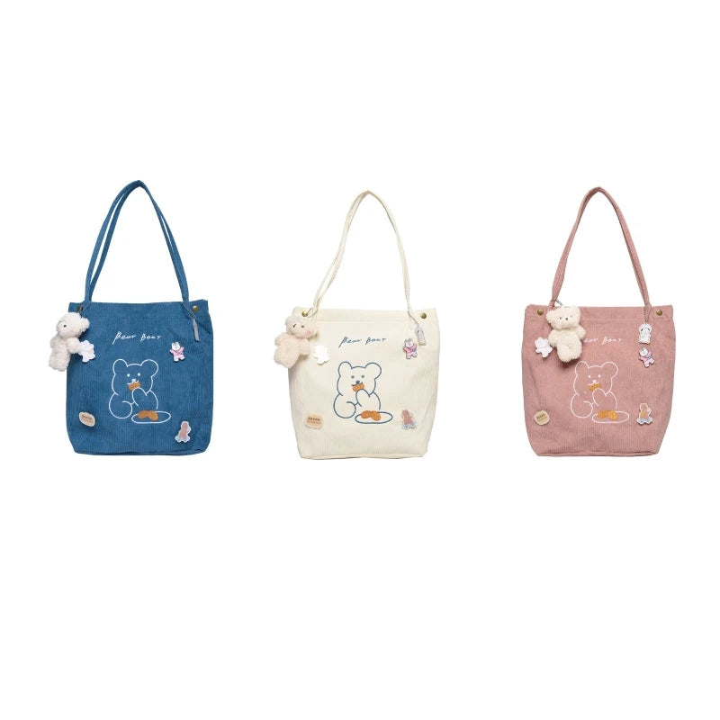 Stay stylish and organized with this corduroy shoulder bag that is perfect for weddings, sports, gym, or everyday use. It features a convenient pendant and is reusable for all your shopping needs.