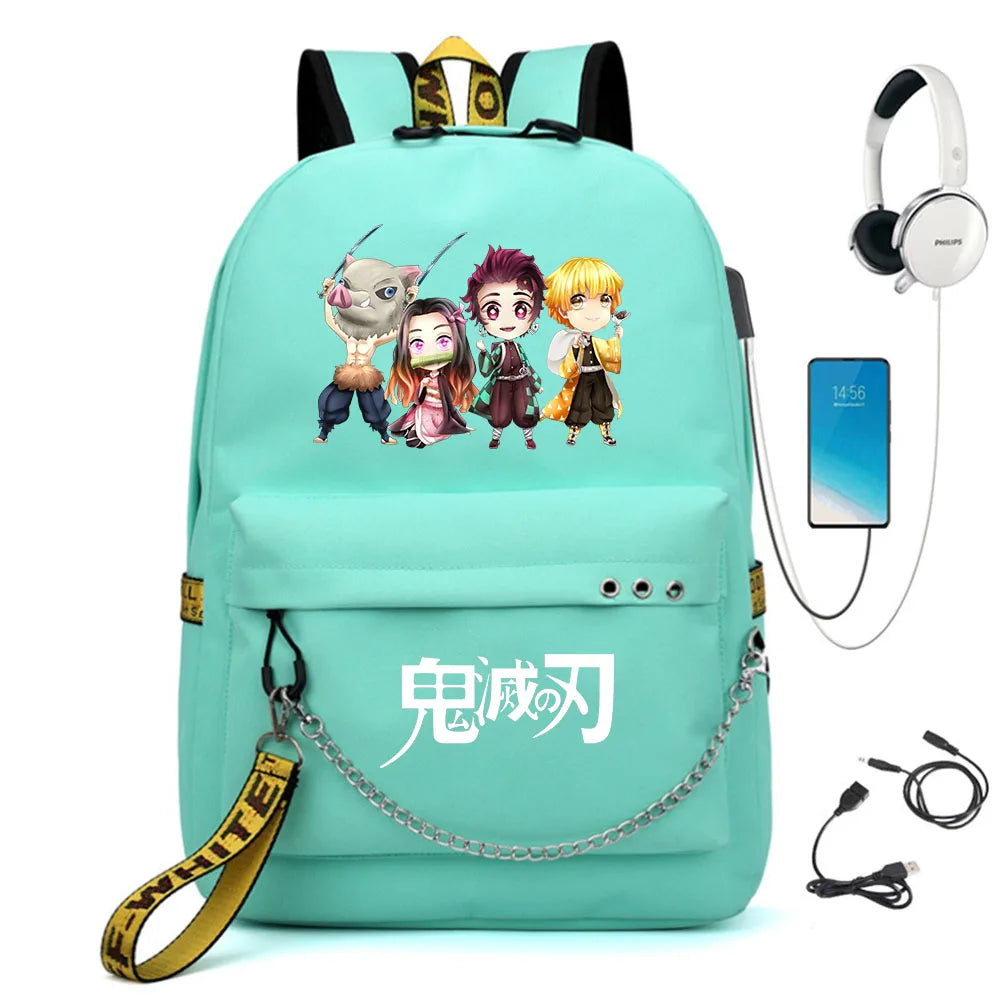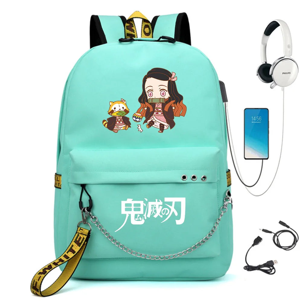 Carry your essentials in style with this Demon Slayer Kimetsu no Yaiba nylon backpack. This casual and durable schoolbag features a USB port for charging devices on the go. The cartoon design adds a fun touch to your daily adventures.