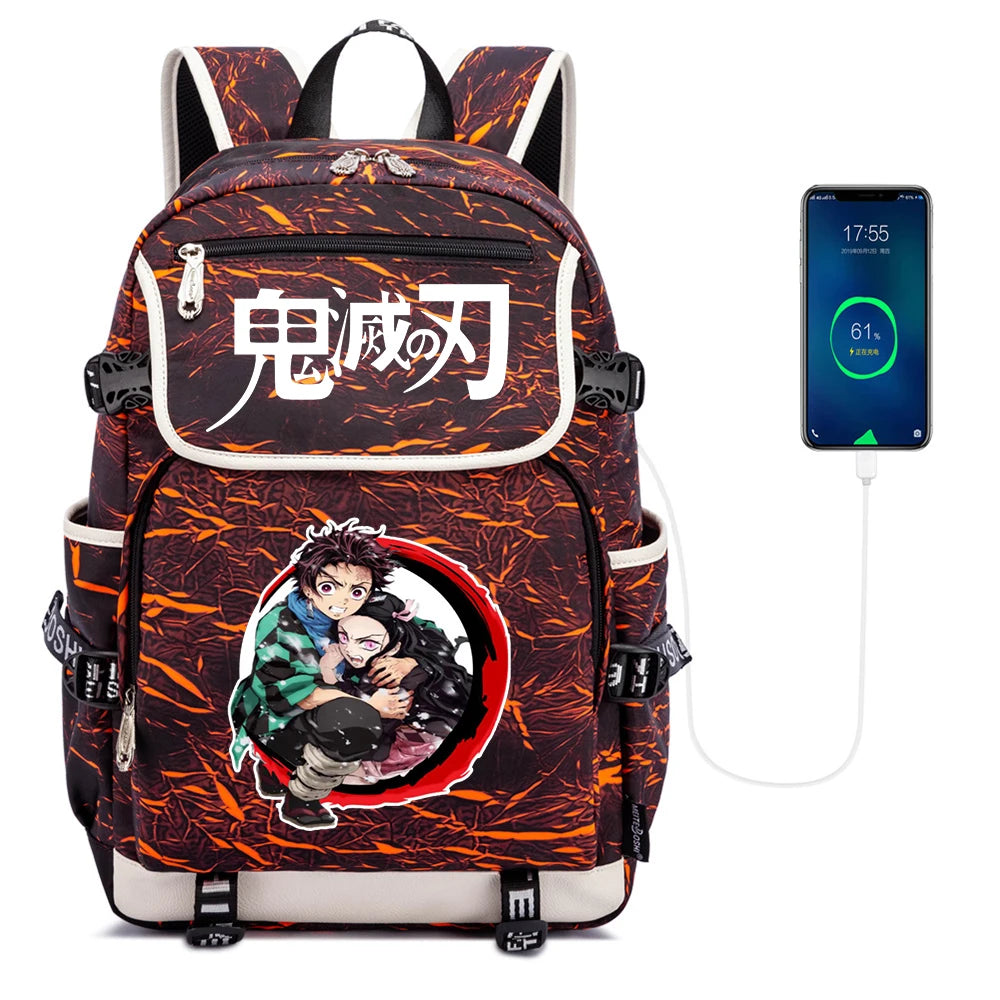 Demon Slayer Kimetsu no Yaiba Backpack USB Charging Knapsack Unisex Packsack