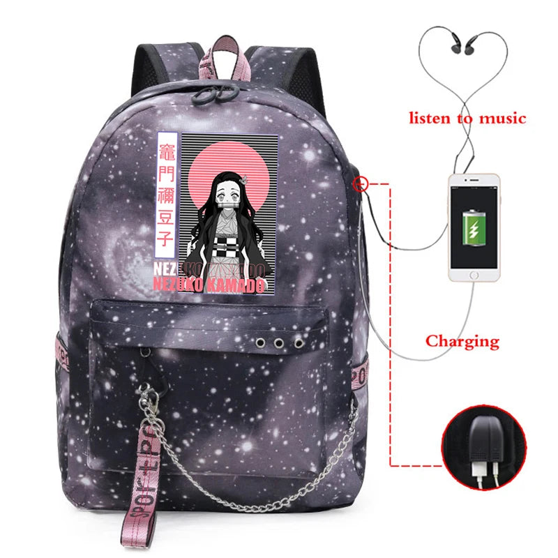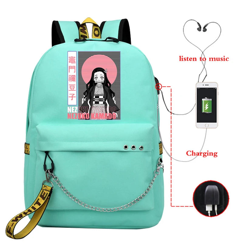 This backpack features a Demon Slayer manga design. It is anti-theft, casual, waterproof, and perfect for travel. Made of durable fabric with a large capacity, great for females.