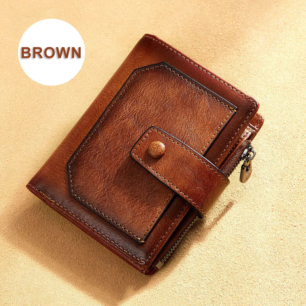 Create your own brushed Chinese retro style leather wallet with RFID blocking technology. This wallet features a triple short design with multiple compartments and a large capacity zipper.