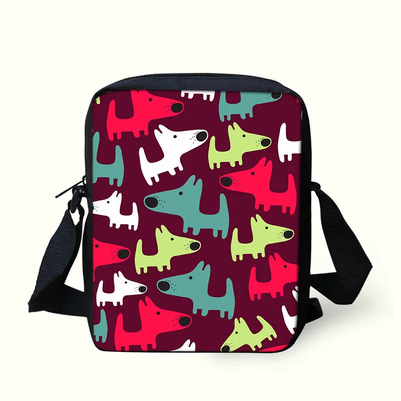 Dog Pattern Messenger Crossbody Bag Girls Handbags Shoulder Bags