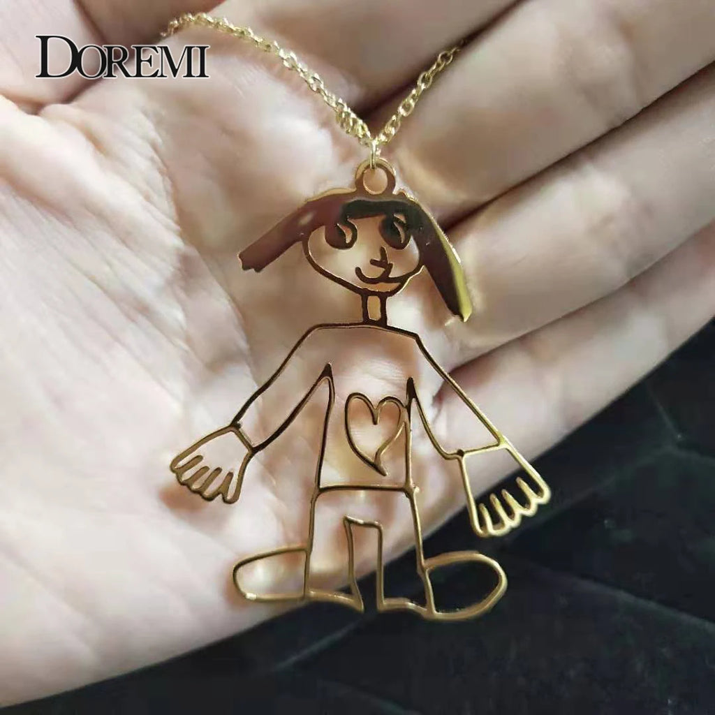 DOREMI Kids Drawing Necklace Customized Child Artwork Name LOGO