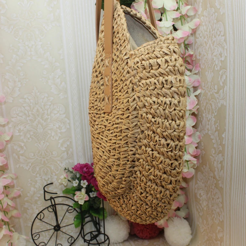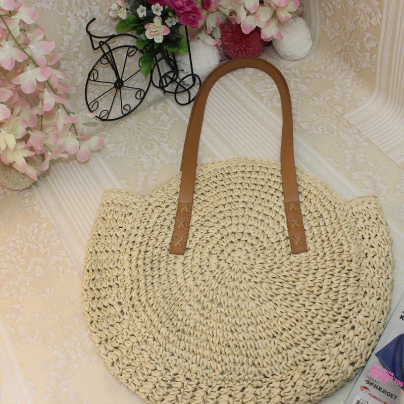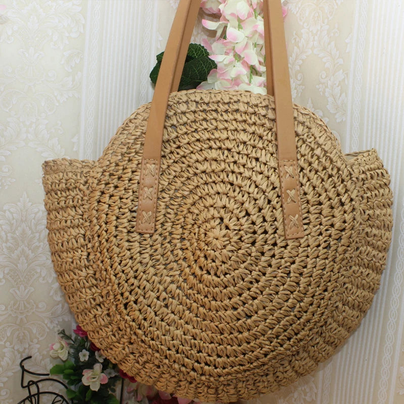 Get beach-ready with this stylish straw bag featuring a round design and playful pom pom tassel. Handwoven for durability and perfect for carrying your essentials for a fun day in the sun.