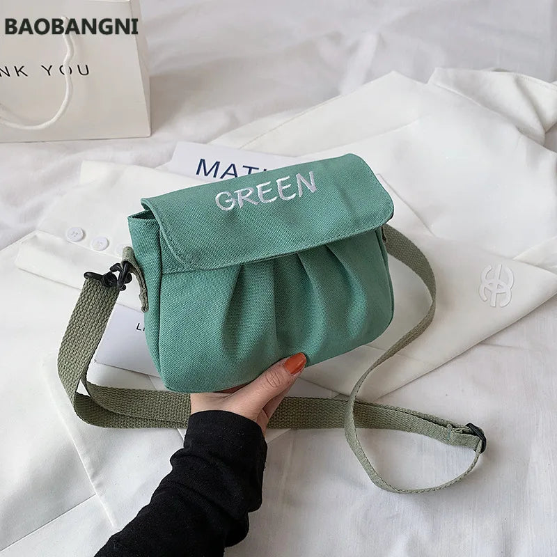 Embroidered Letters Canvas Small Bag Female Candy Small Fresh Shoulder Bag