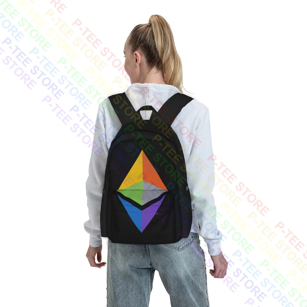 Stay stylish and organized with this large capacity backpack that is perfect for storing your essentials while on the go. Show off your love for Ethereum 2.0 and cryptocurrency with this sleek design.