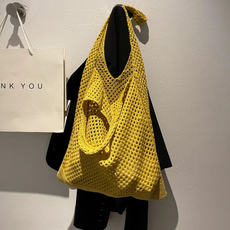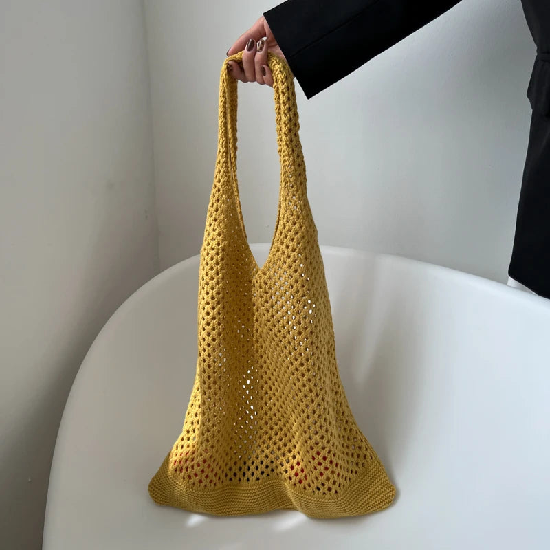 Get ready for summer with this large capacity shoulder bag featuring a stylish woven handle. Perfect for the beach or casual outings, this tote is a must-have for any fashion-forward lady.