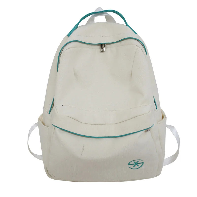 This stylish female canvas backpack is perfect for school, travel, or casual outings. It features a solid color design that is both trendy and practical.