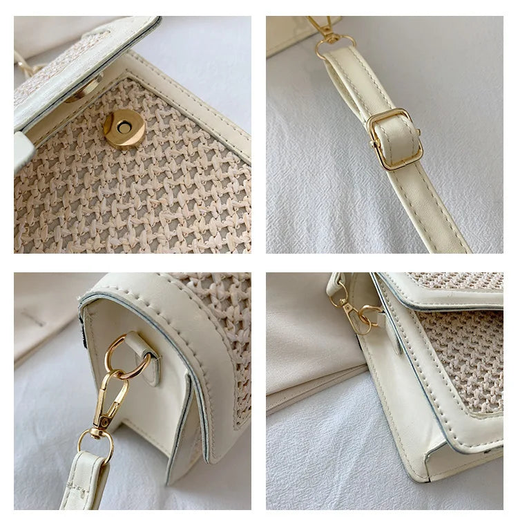 Elevate your style with this woven contrast crossbody bag, perfect for a casual outing or vintage look.
