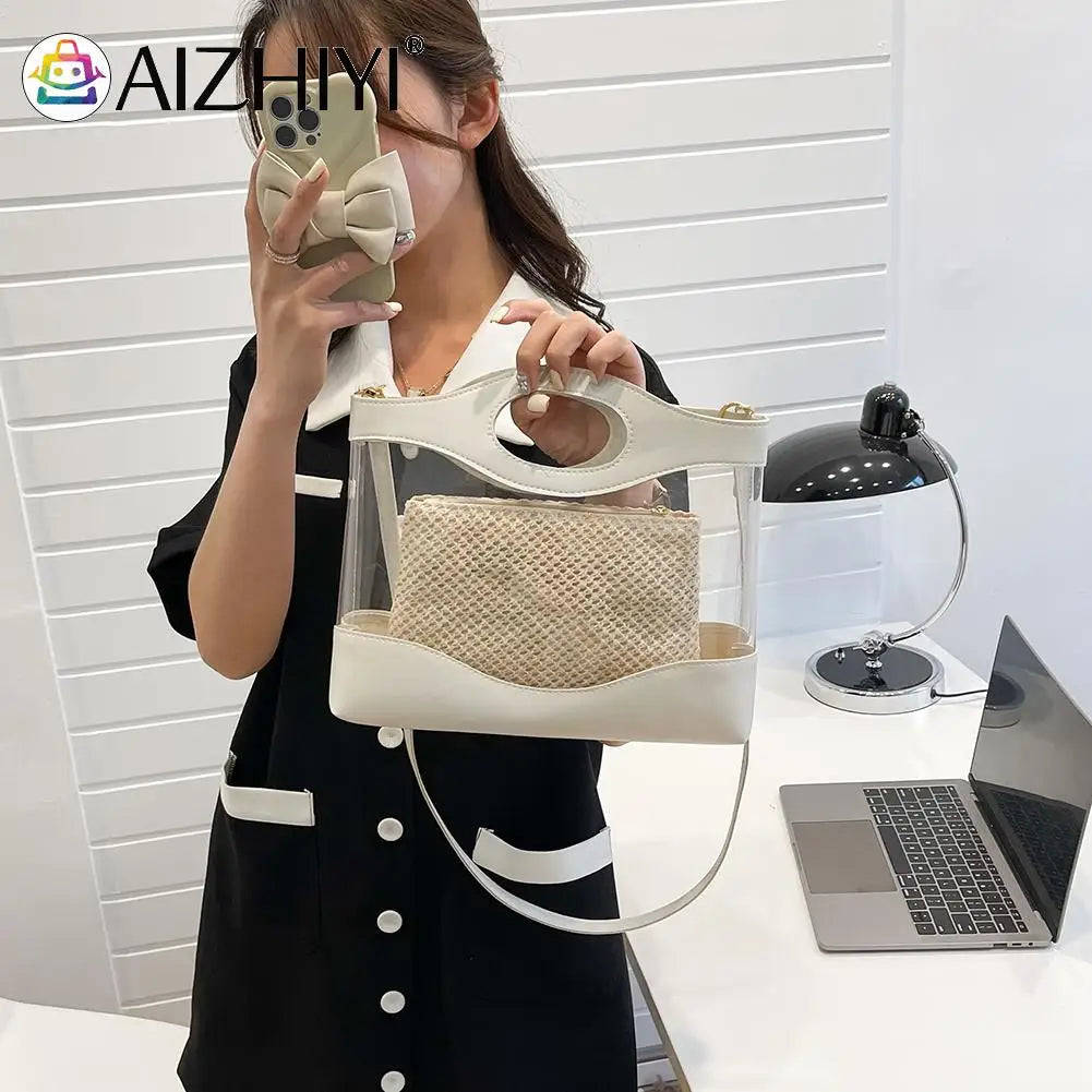 Female Two Piece Set PVC Shoulder Messenger Heart Bag