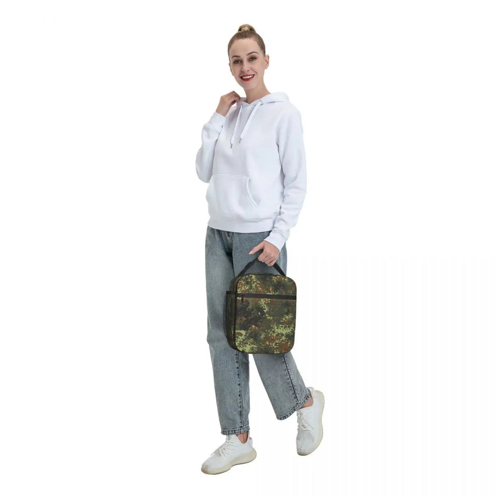 Flecktarn Camo Reusable Lunch Box Leakproof Insulated Cooler Bag