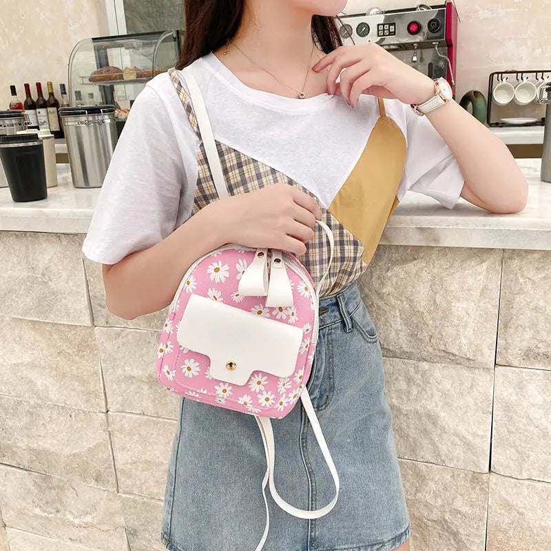 Floral Print Zipper Ladies Casual Daypacks Mochila High School Mini Bag