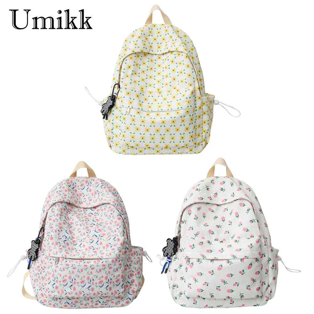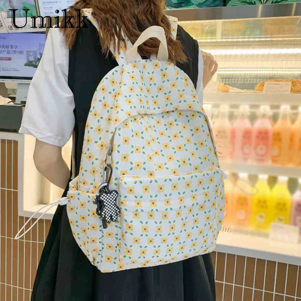 Floral Printed Student Backpack Nylon Daypack Teen Shoulder Bags for Girls