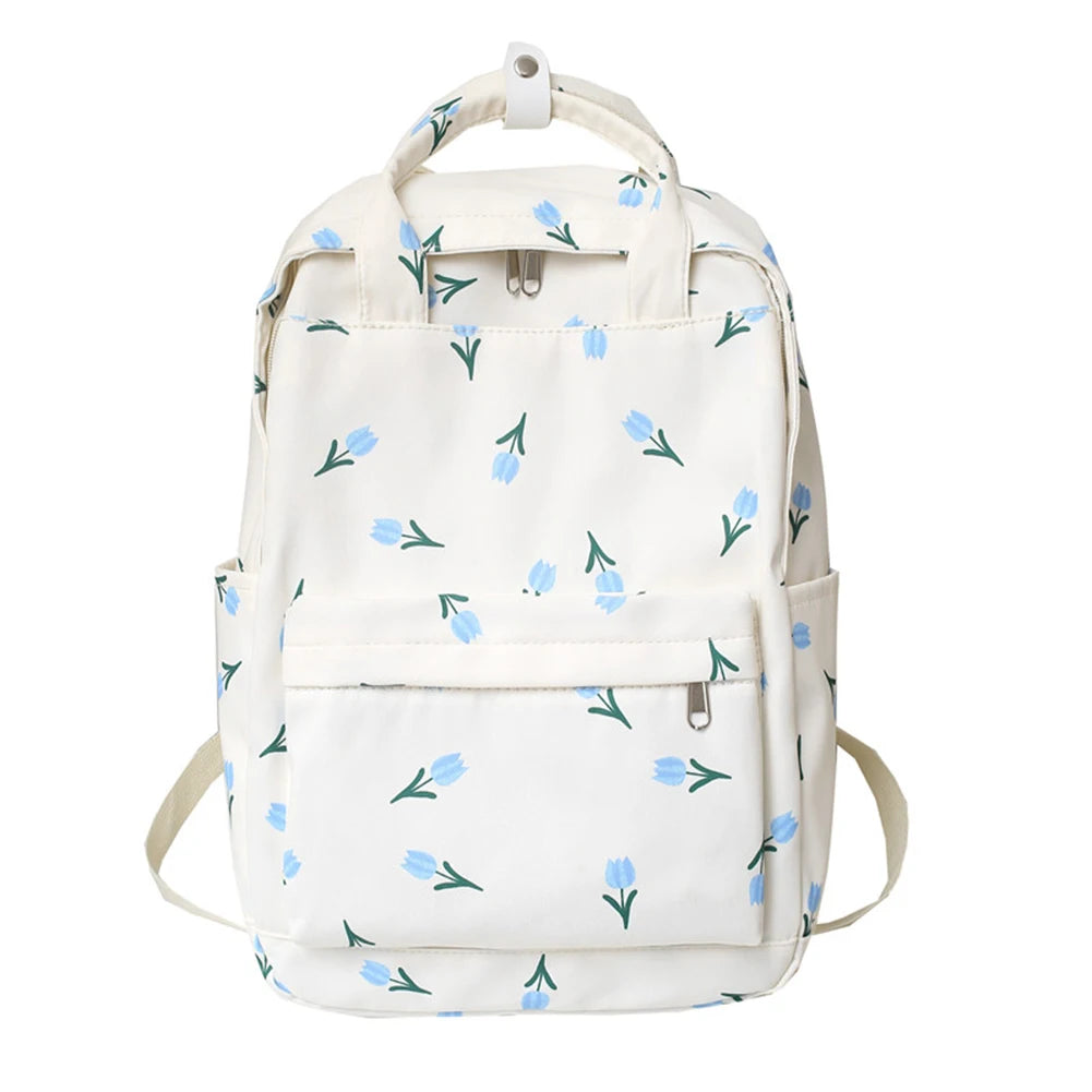 This school bag features floral prints and offers a large capacity for students. Made of durable nylon, it is perfect for travel and everyday use.