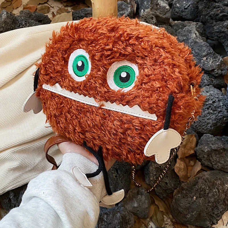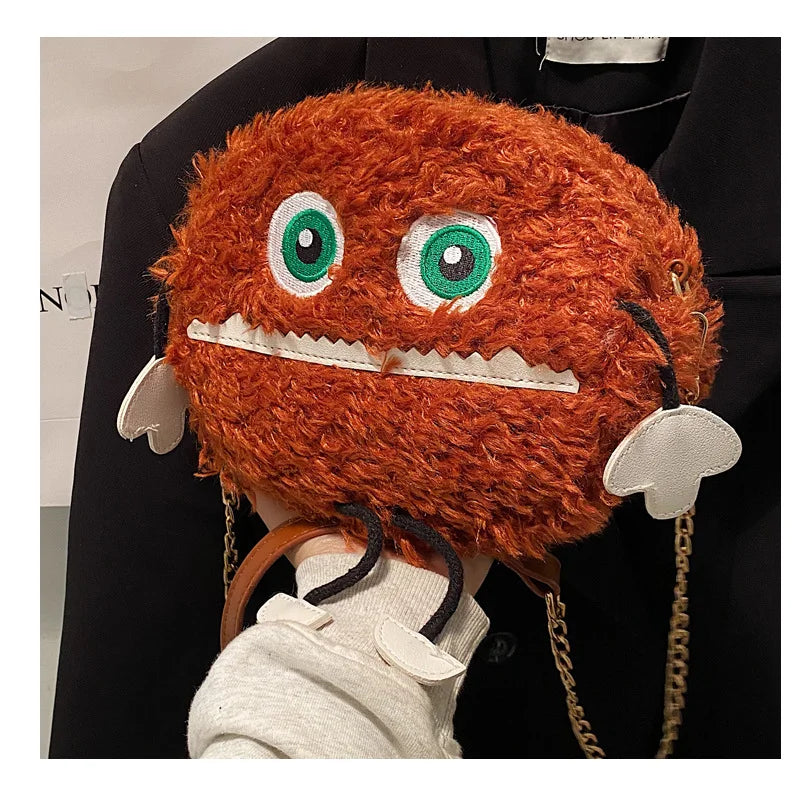 This cute plush bag is perfect for adding a unique touch to your outfit. Its fluffy design and chain strap make it a stylish accessory.