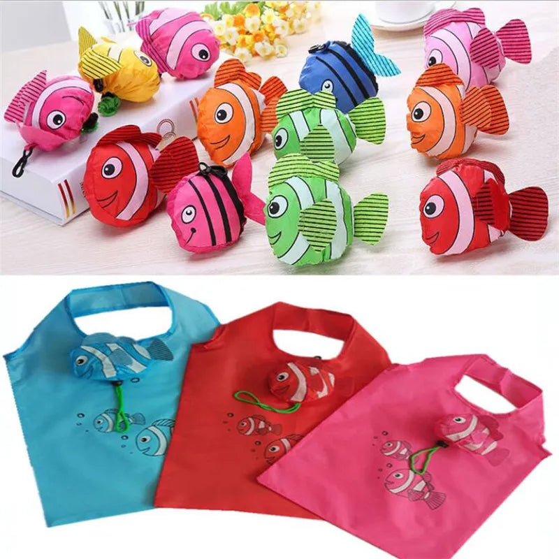 Foldable Recycle Shopping Bag Cartoon Sea Fish Fruit Vegetable Grocery Tote