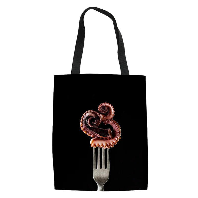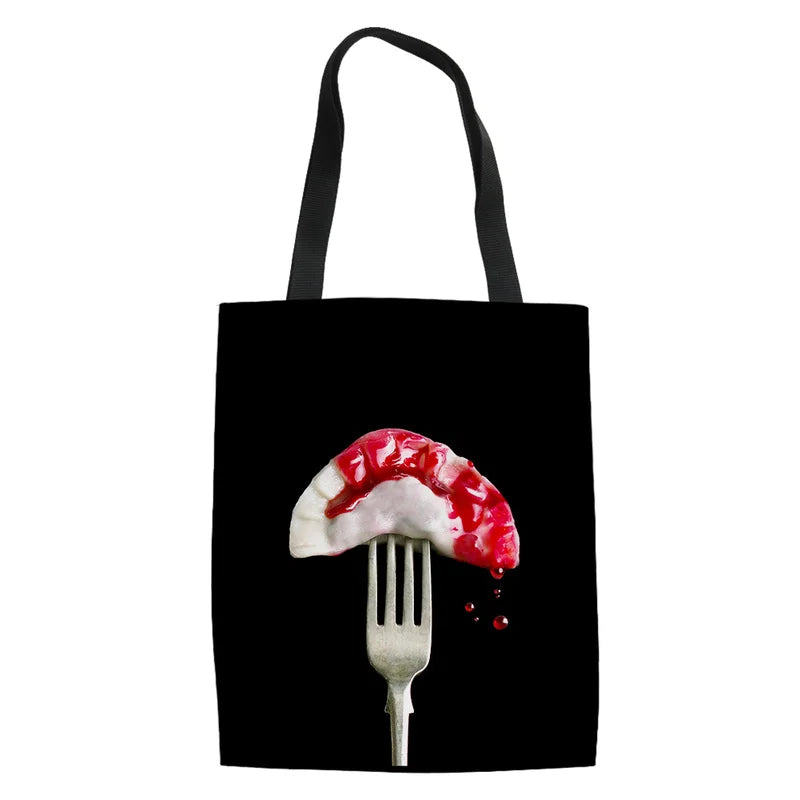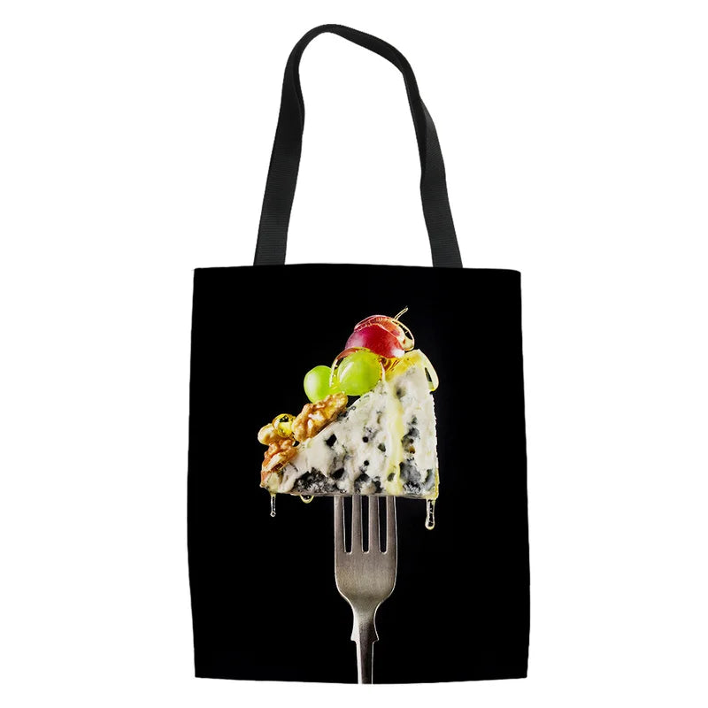 Food Printed Canvas Shoulder Bags Casual Ladies Beach Pouch Tote Bolsa De Lona