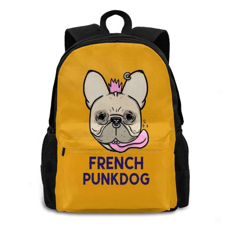 This stylish backpack featuring a French Punkdog design is perfect for students, school, laptop, and travel needs.