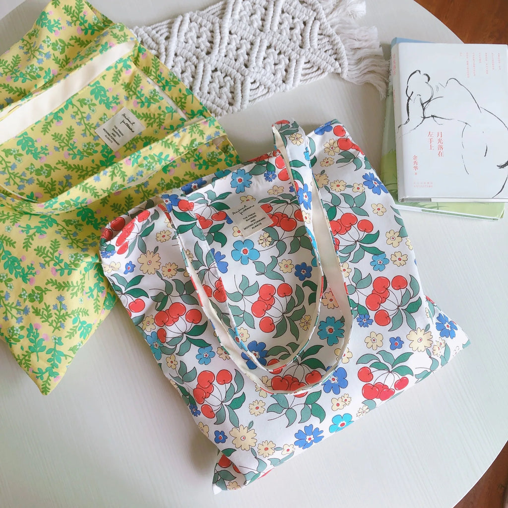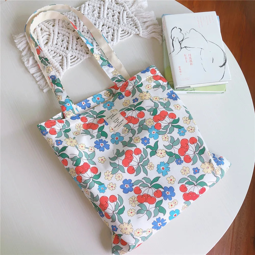 Fresh Flower Cotton Rag Bag Large Capacity Eco Tote Summer Shoulder Bag