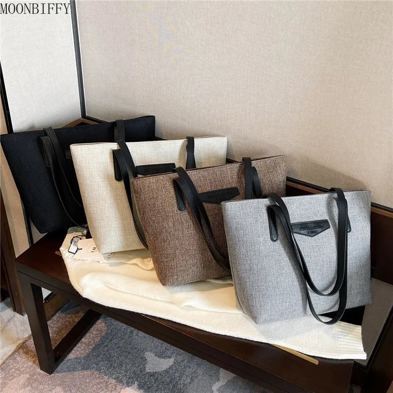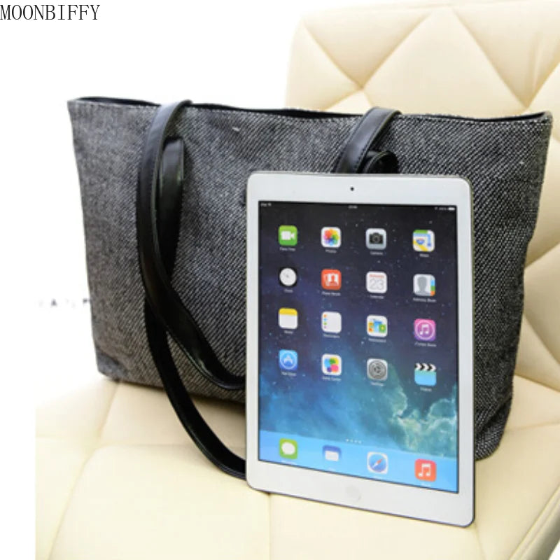 This large canvas shoulder bag is perfect for female students who love a fresh and trendy look. It's spacious and stylish, making it ideal for carrying all your essentials.