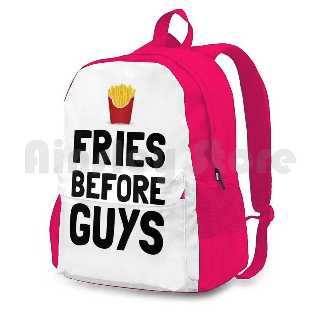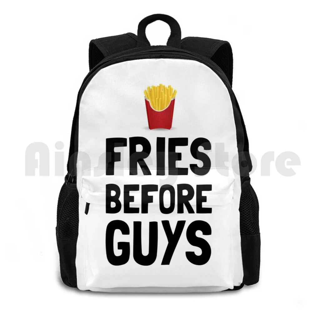 Description:Stay cool and quirky with this humorous French fry themed backpack perfect for outdoor activities.Features: Durable and lightweight for hiking, biking, climbing, or any sports activity Spacious main compartment for all your essentials Adjustable shoulder straps for a comfortable fit Unique fries before guys design adds a touch of fun...
