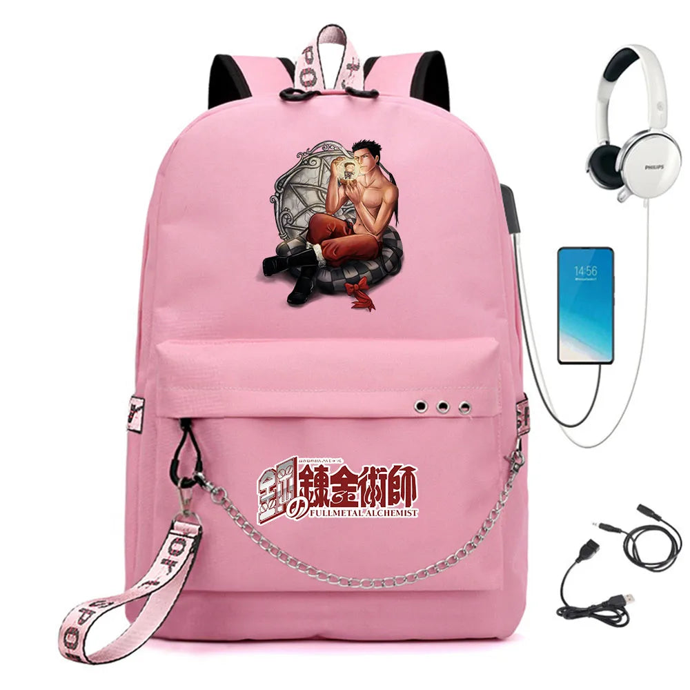 Fullmetal Alchemist Nylon Backpack USB Schoolbag Student Laptop Bag