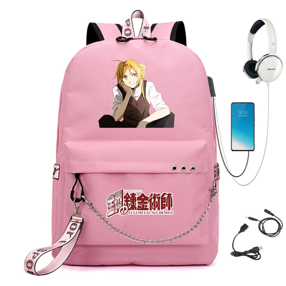 Show off your love for Fullmetal Alchemist with this casual and practical nylon backpack. It features a convenient USB charging port, making it perfect for students or teenagers. Use it for school, travel, or everyday use.