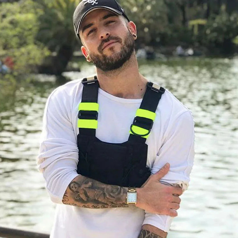 This streetwear unisex bag is a military-inspired chest rig designed for practicality and style. It's perfect for carrying essentials while adding a fashion statement to your outfit.