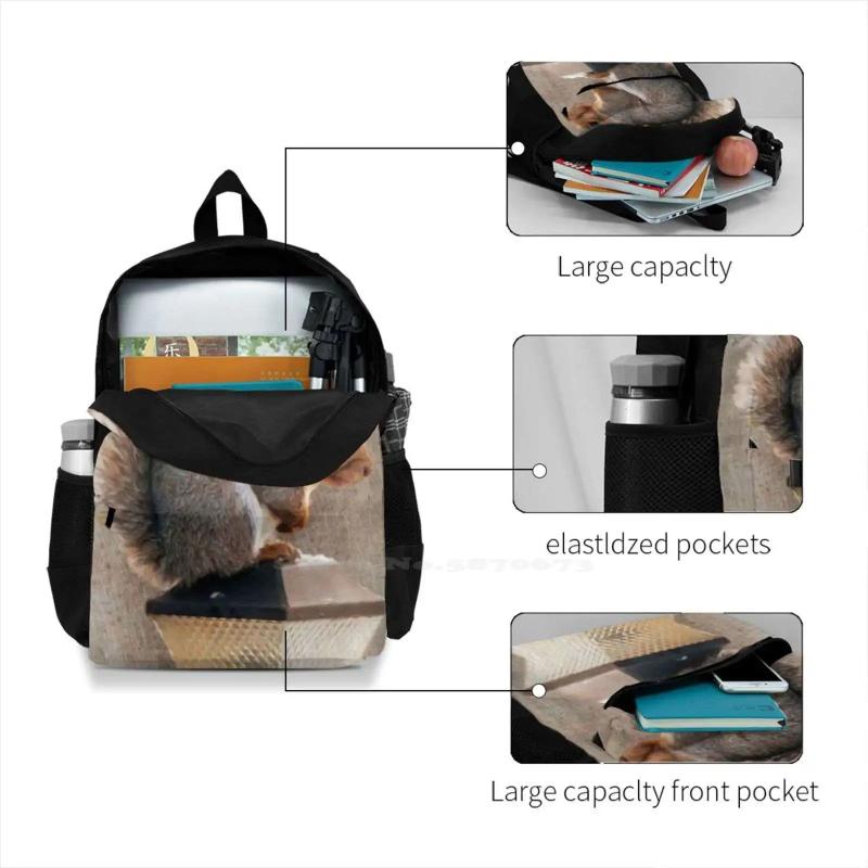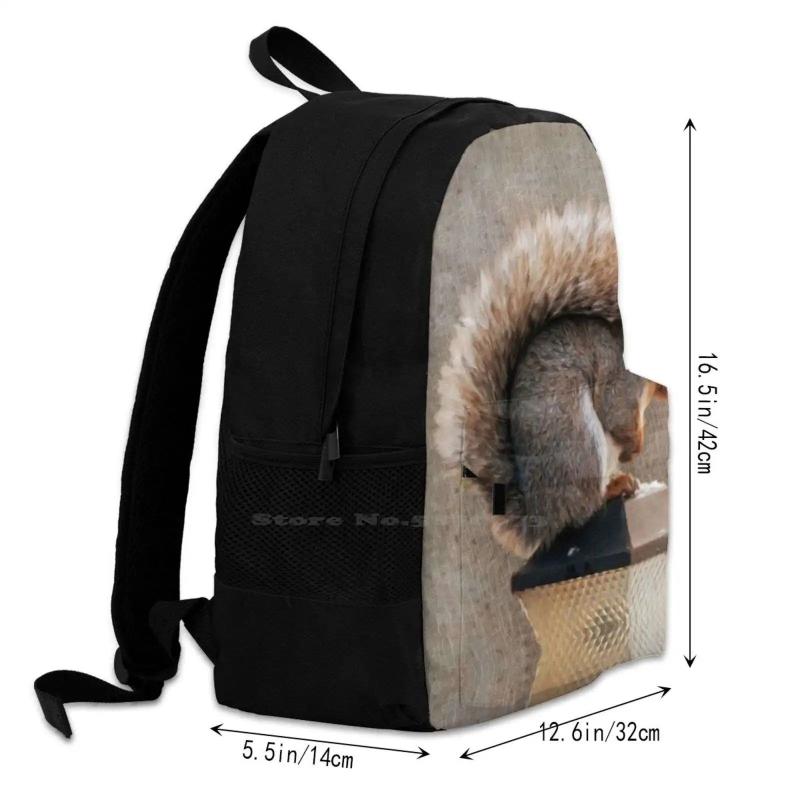 Description:This backpack features a cute bushy tail squirrel design with a cozy fur-lined hood, perfect for carrying your laptop while on the go. The squirrel is sitting perched on a backyard light post lamp, adding a unique touch to your style.Features: Fur lined hoodie backpack for travel and laptop carrying...