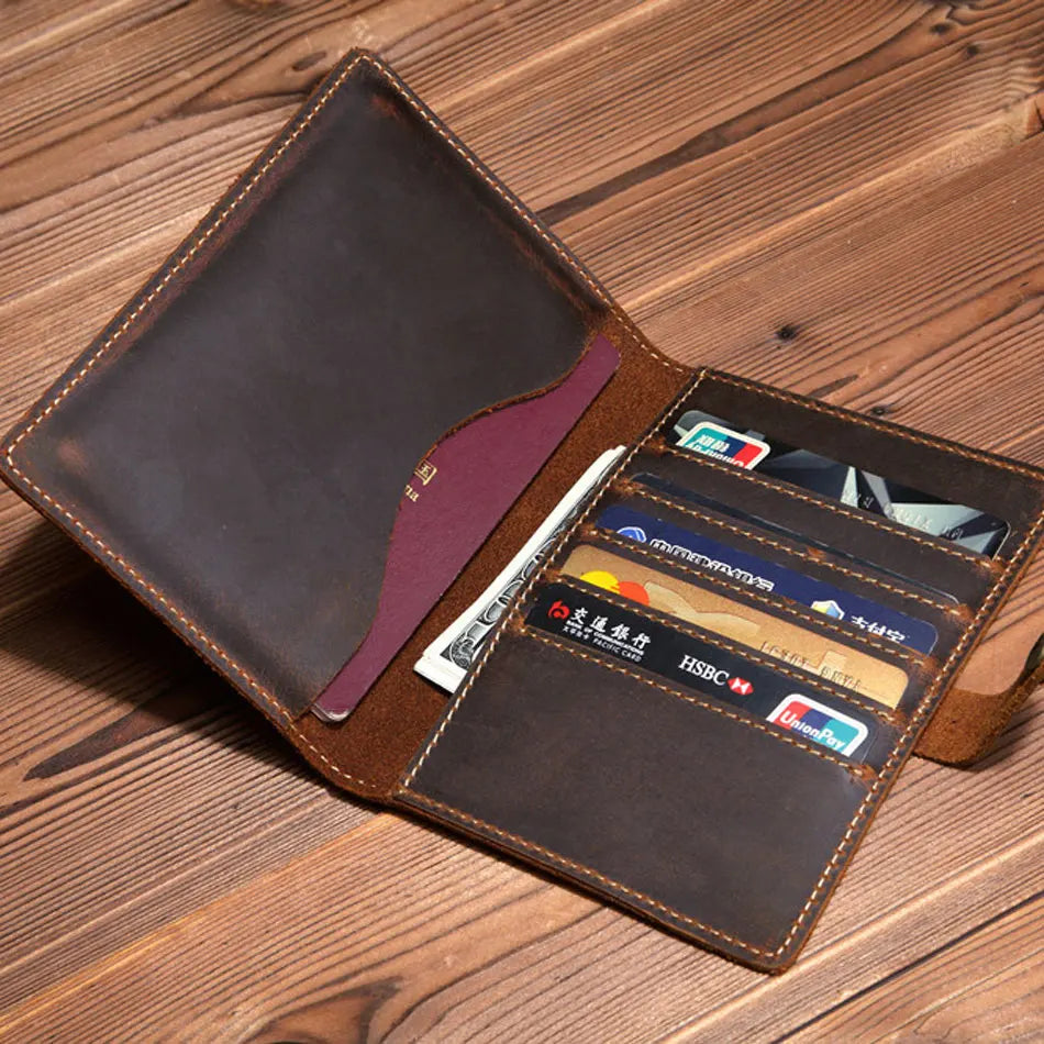 Genuine Leather Passport Cover Crazy Horse Cow Leather Travel Passport Holder