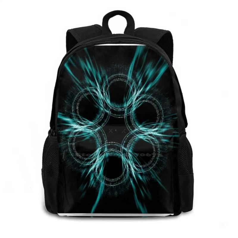This stylish geometric blur school bag features rings graphics. It has a big capacity and can hold a laptop up to 15 inches.