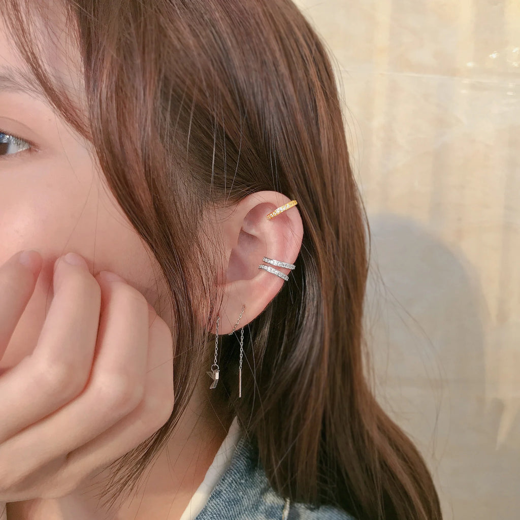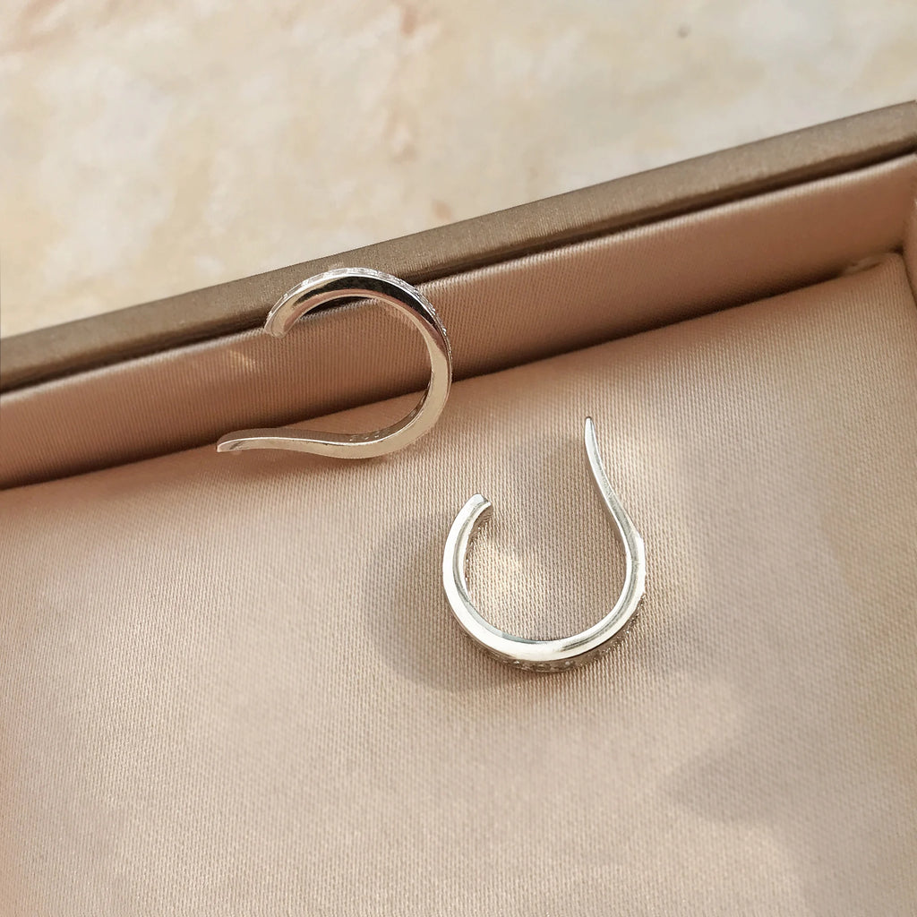 Make a bold statement with this wide version geometric punk ear clip featuring a unique fungus design adorned with dazzling diamonds.