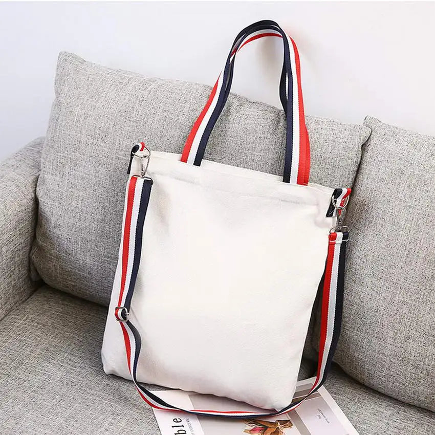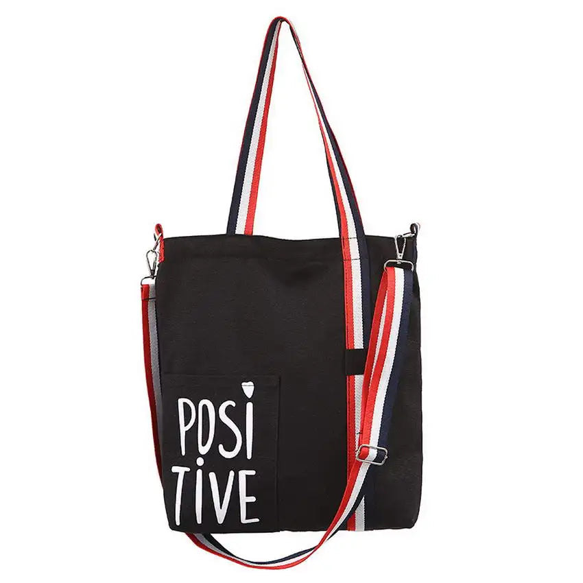 Large preppy canvas tote perfect for school, books, or as a stylish purse. Features a crossbody strap for easy carrying.