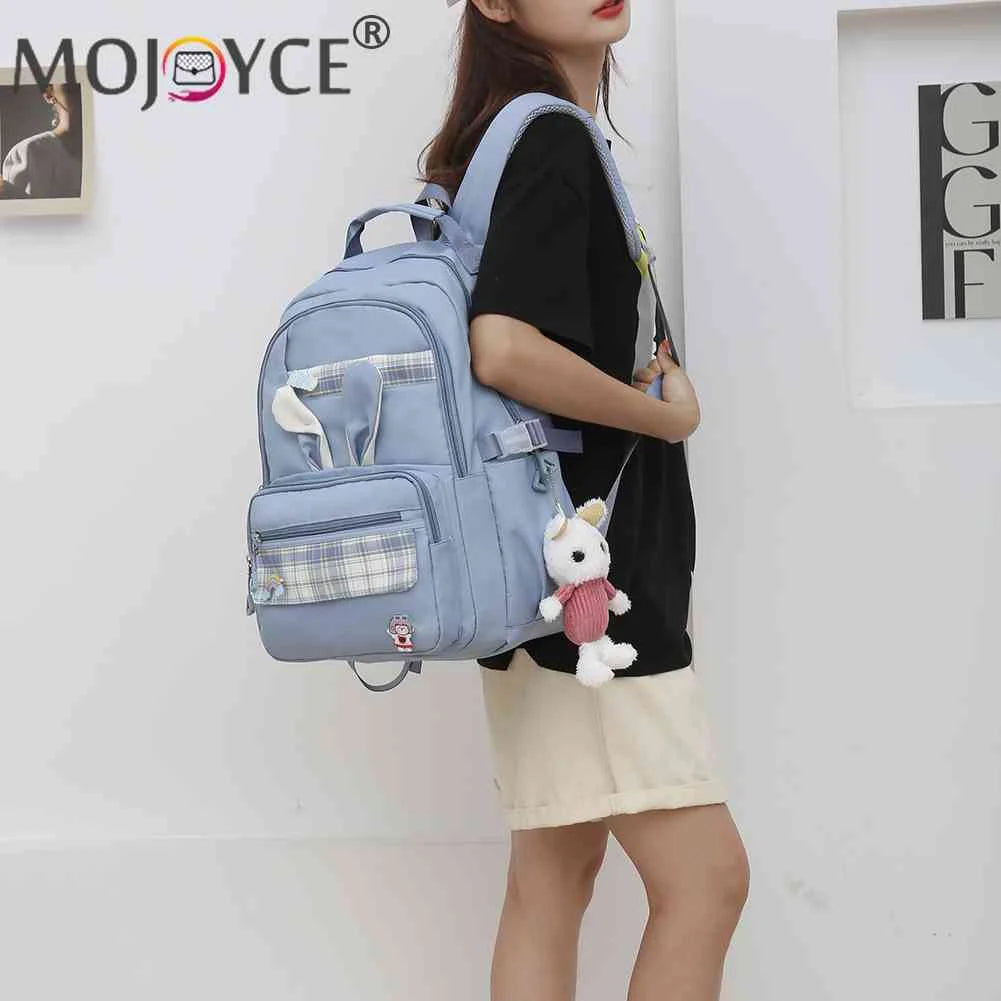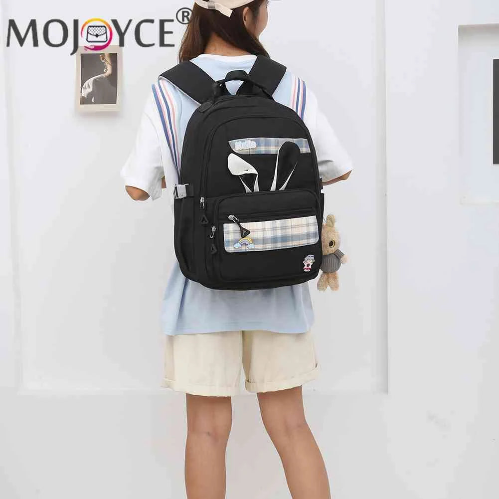 Girl Rabbit Backpack School Backpack Nylon Large Capacity Plaid Design