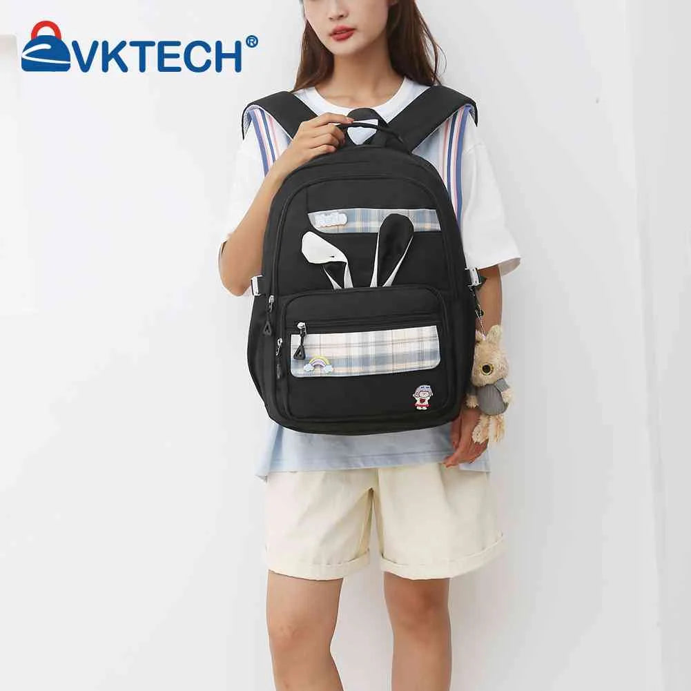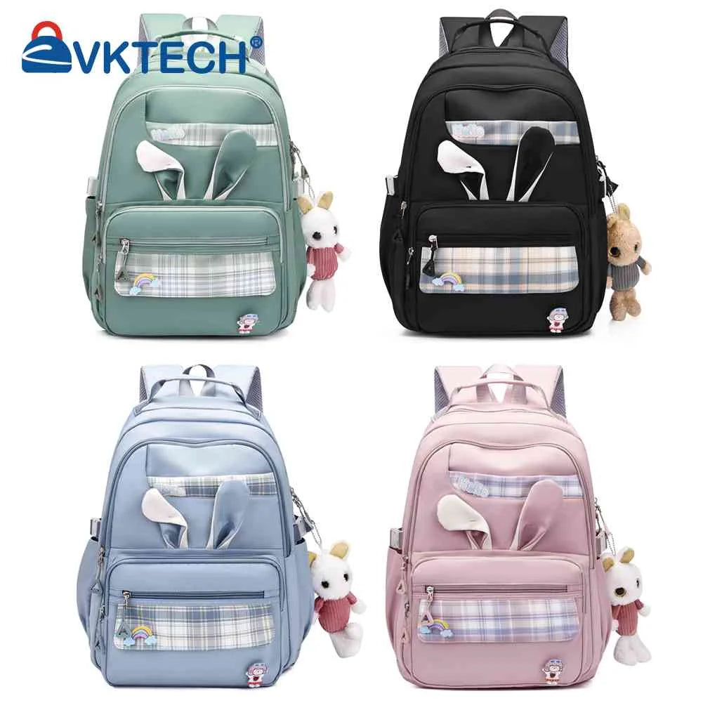 Girl Rabbit Pendant Student Backpack Large Capacity Book Backpack