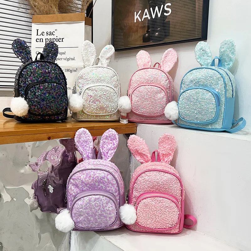 Girls Backpack Sequin Children Bag Kids Rabbit Ears Small Backpack