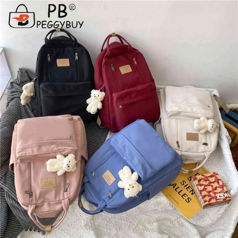 Girls Casual Bear Pendant Backpack Large Capacity Outdoor Travel Daypacks