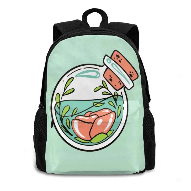 Description:Unique and stylish backpack featuring a big flower in a tiny glass vial design. Perfect for school or casual use.Features: Durable and high-quality material construction Spacious main compartment with multiple pockets Adjustable shoulder straps for comfortable carrying Beautiful floral design in a small glass vial Ideal for carrying books, essentials,...