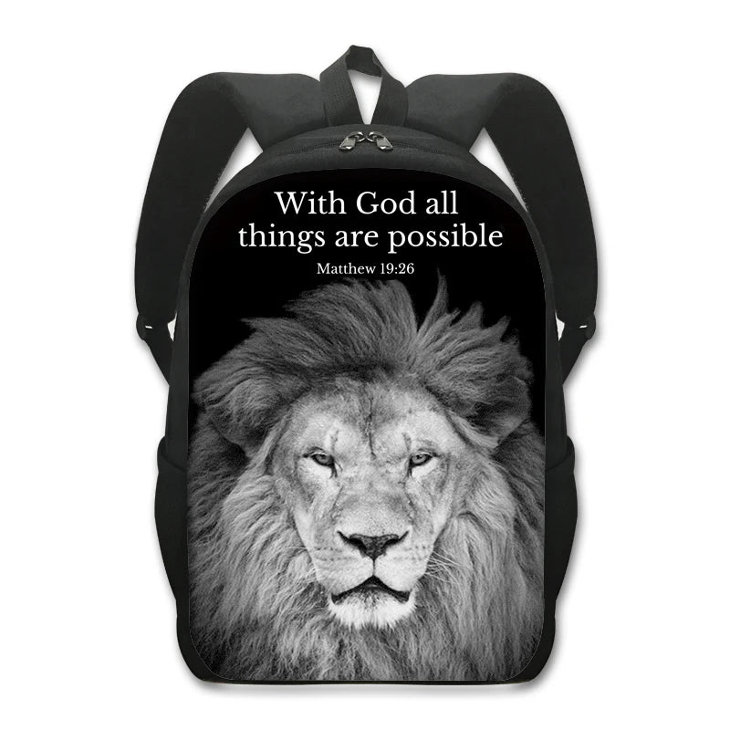 God All Things Possible Lion Backpack Bible Verse Rucksack