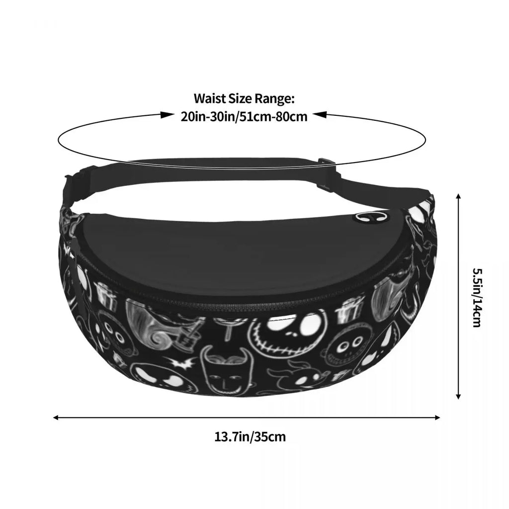 This Gothic waist bag features a Halloween ghost print, perfect for adding a spooky touch to your outfit. Made of durable polyester, suitable for everyday use.