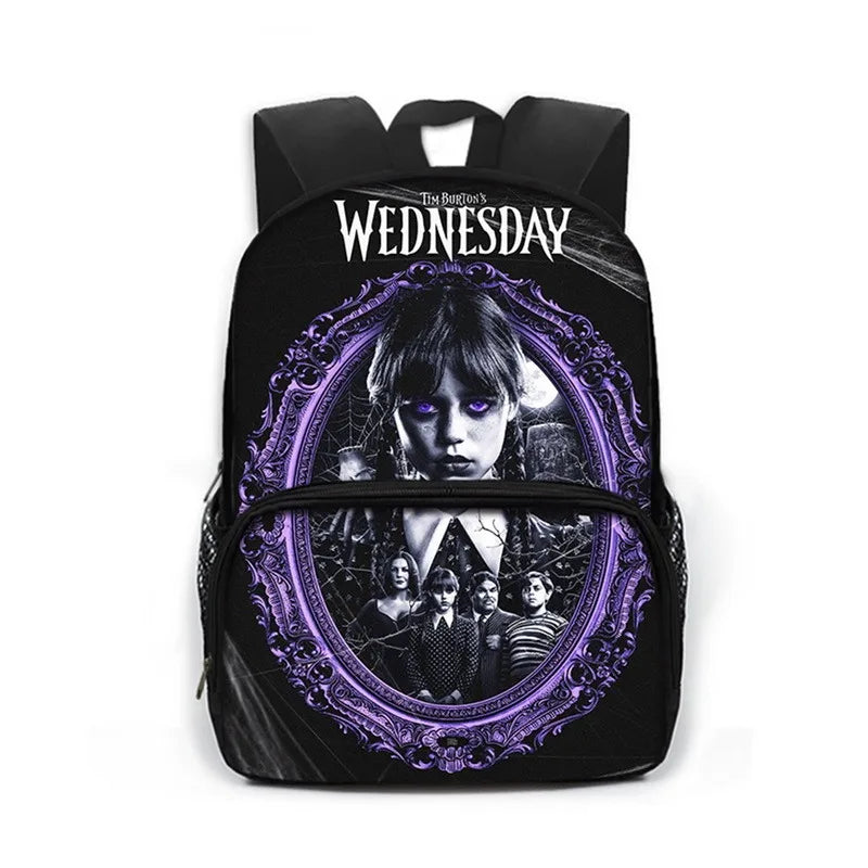 Get your child this stylish and spooky school bag featuring Wednesday Addams and Enid. Perfect for carrying books and essentials to school.