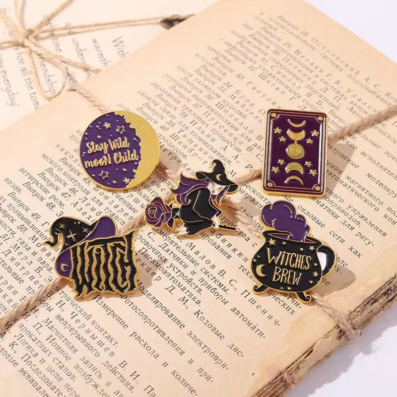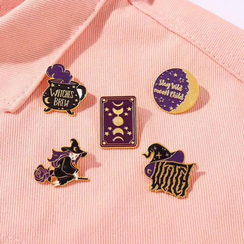 Gothic Witch Enamel Pins Witchcraft Tarot Moonlight Witch Hat Chest Pin