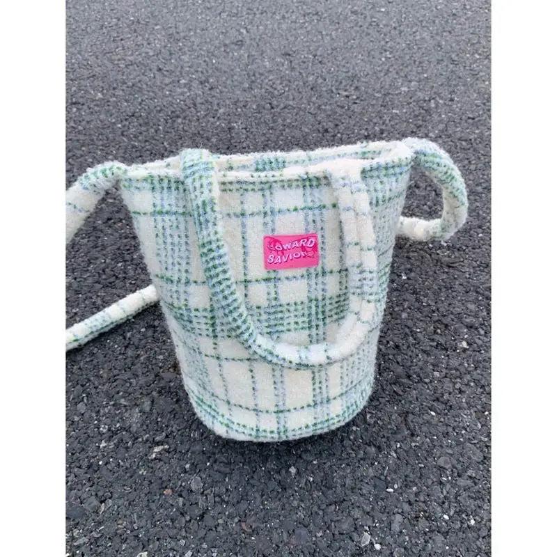 Green Matcha Check Tote Bucket Bag Lady Bags
