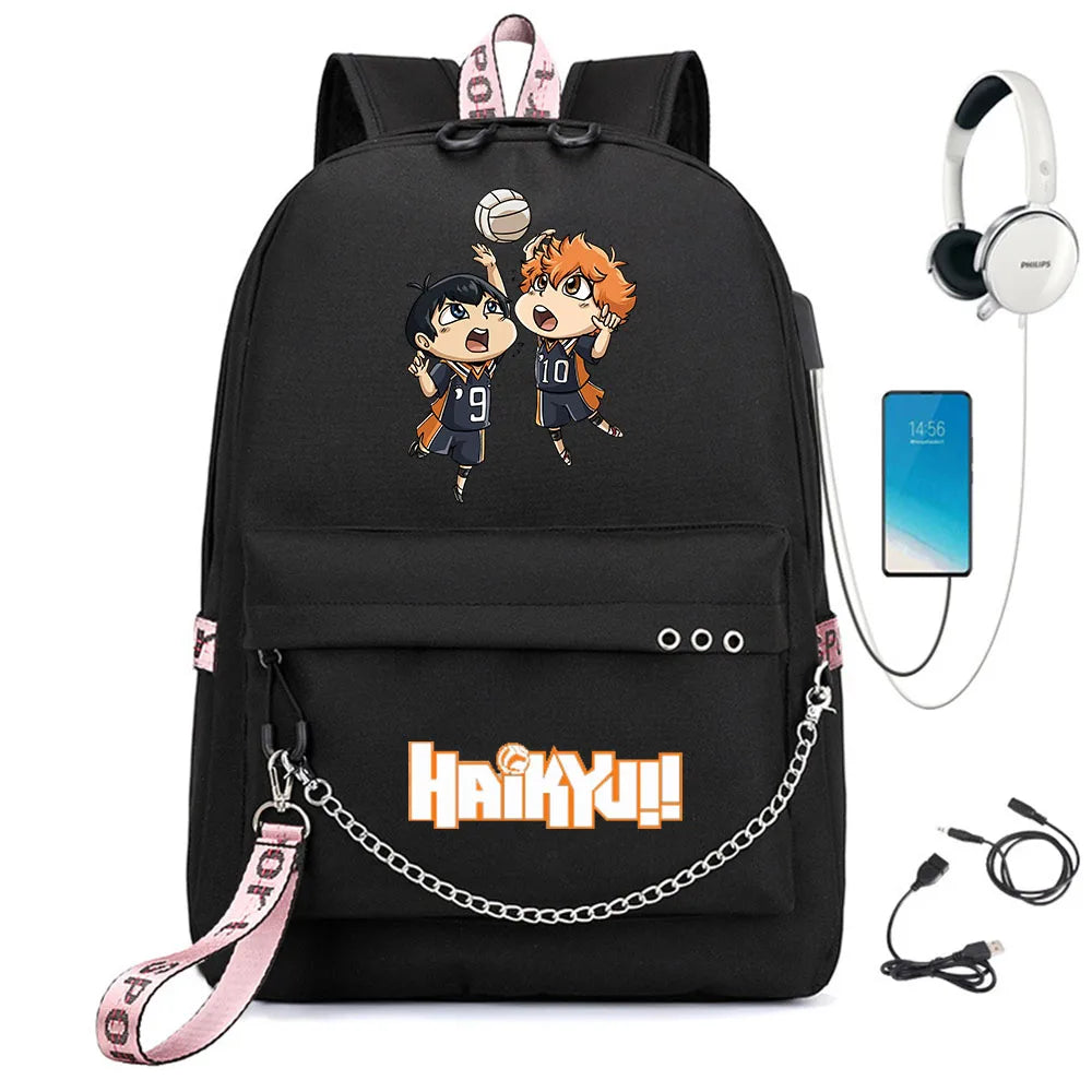 Haikyuu Anime Unisex Backpack with USB Charging Port and Headphone Jack