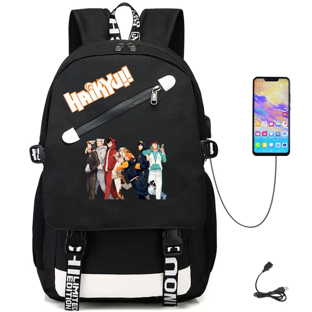 This Haikyuu!! themed backpack is perfect for teengers and students. Made of high-quality oxford fabric, it features a USB charging port for added convenience.