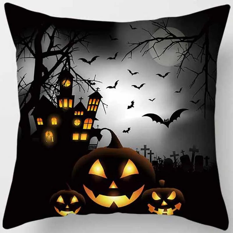 • Halloween-themed pillow cases with bat cats and pumpkins design