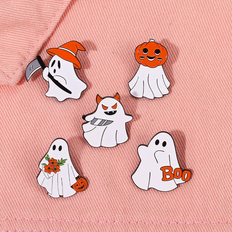 Halloween Boo Enamel Pins Funny Pumpkin Death Brooches Bag Lapel Button Badges