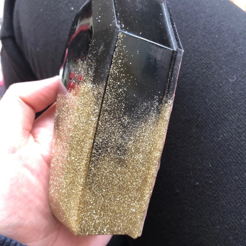 Create your own spooky Halloween-themed storage box with this crystal epoxy resin mold. The mold features a coffin shape with a built-in mirror for added charm.