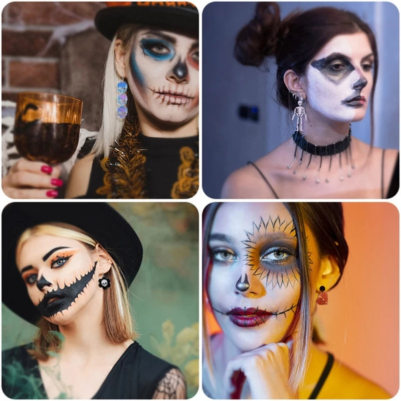 Create spooky Halloween accessories with this geometric skull and pumpkin mold. Great for making earrings, pendants, or keychains. Perfect for adding a touch of Halloween to your outfit or luggage bag.