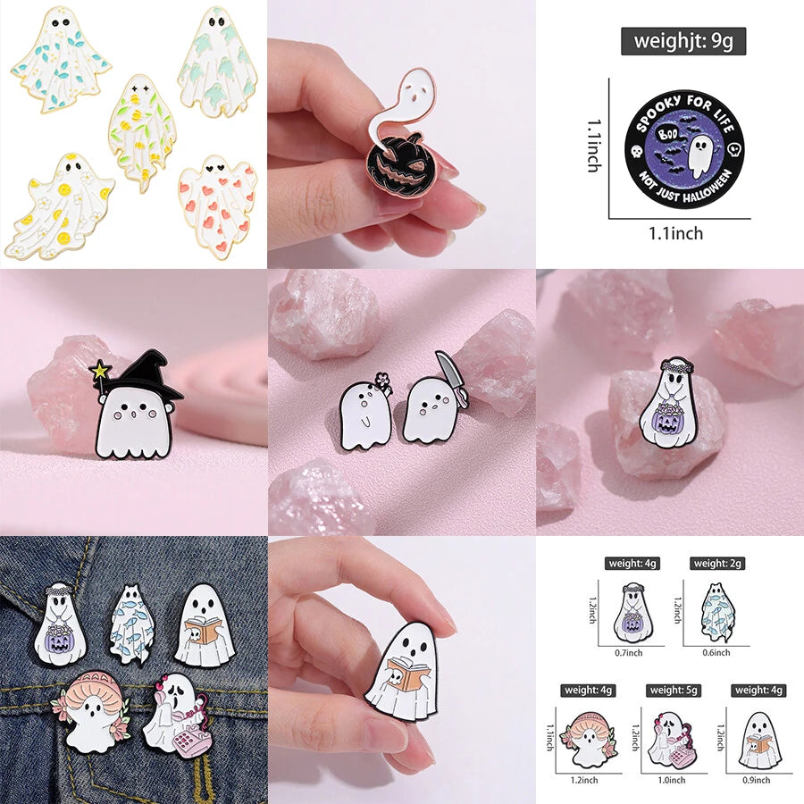 Halloween Ghost Enamel Pins Pumpkin Lapel Pins Cartoon Witch Breast Brooches